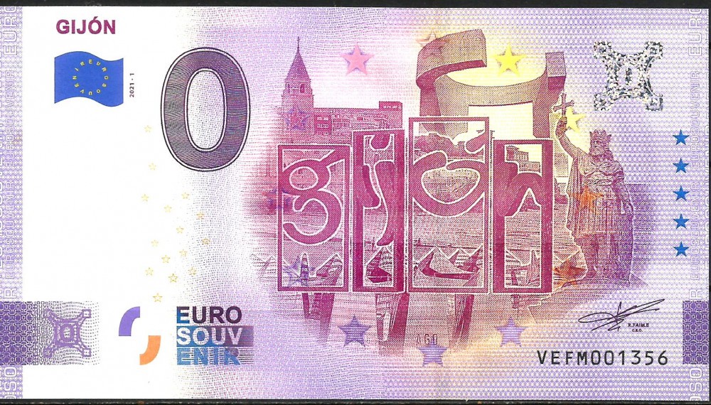 !!! 0 EURO SOUVENIR - SPANIA , GIJON - 2021.1 - UNC