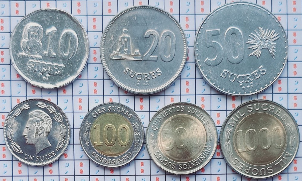 01B35 Ecuador set 7 monede 1, 10, 20, 50, 100, 500, 1.000 Sucres 1988 - 1997 UNC
