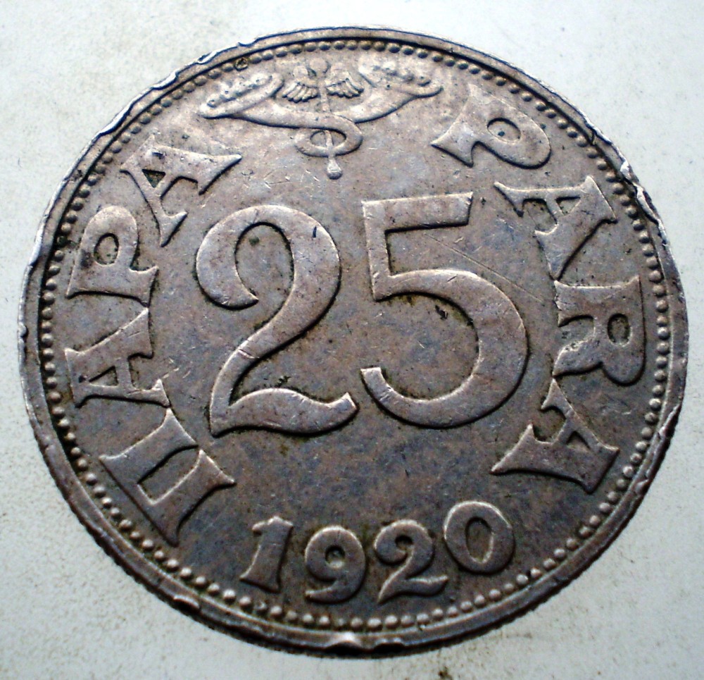 KM# 3, 25 PARA, Nickel-Bronze. Lovita pe muchie (vezi foto).