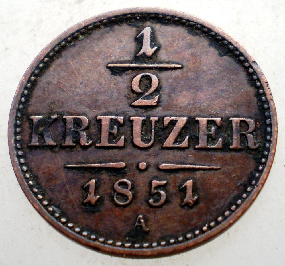 1.487 AUSTRIA 1/2 KREUZER 1851 A