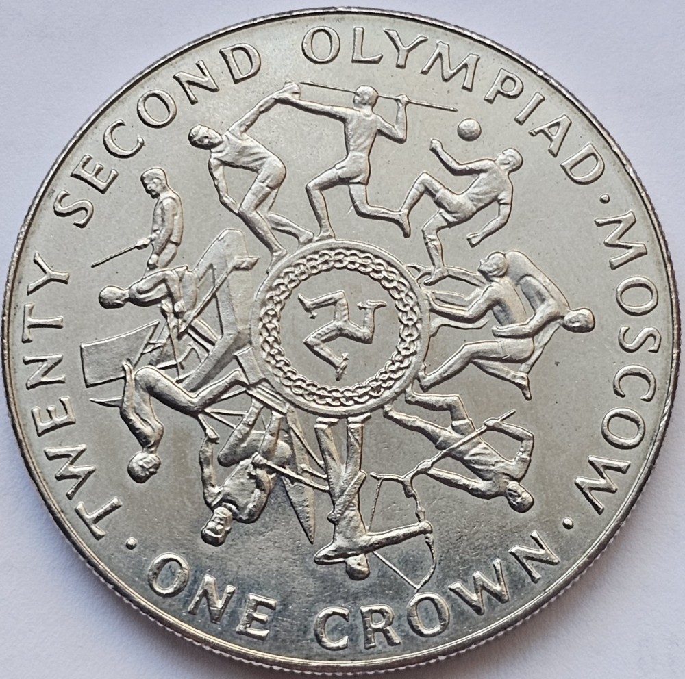 1 Crown 1980 Isle of Man / Insula Man, 1980 Olympics, Moscow, km#66