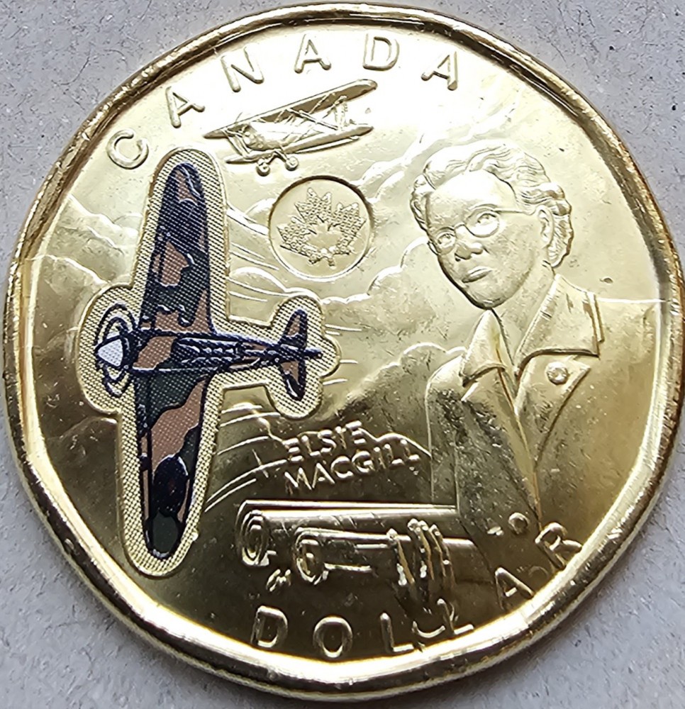 1 Dollar 2023 Canada, Elsie Macgill, Hurricane, unc, varianta color