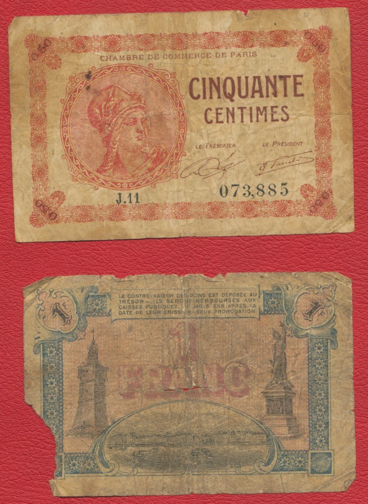 1 Franc 1917, 50 centimes 1920 - 2 bancnote Franta