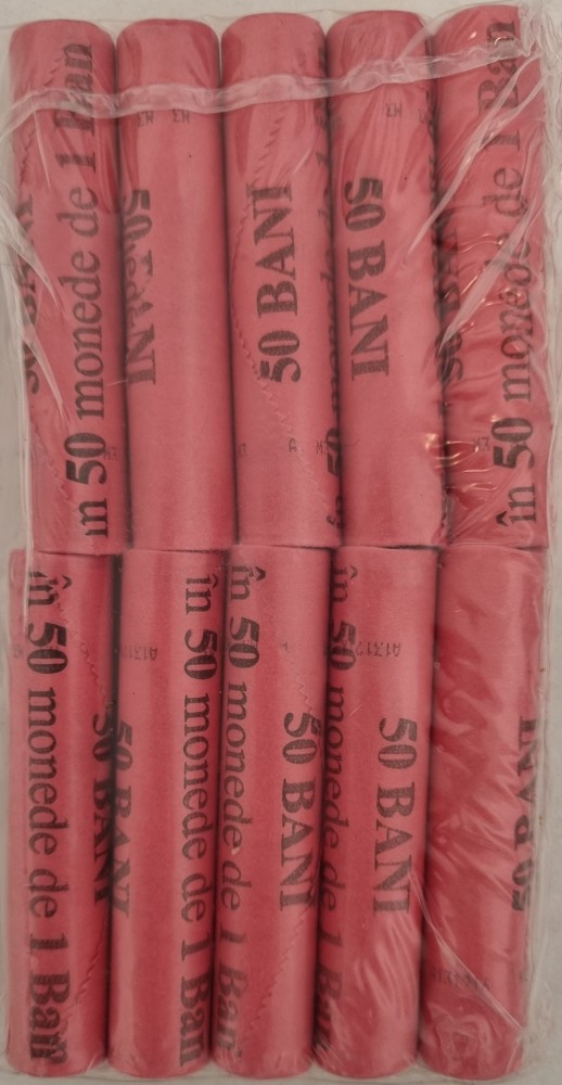 10 fisicuri 50 bani in monede de 1 ban 2016 sigilate ambalaj BNR