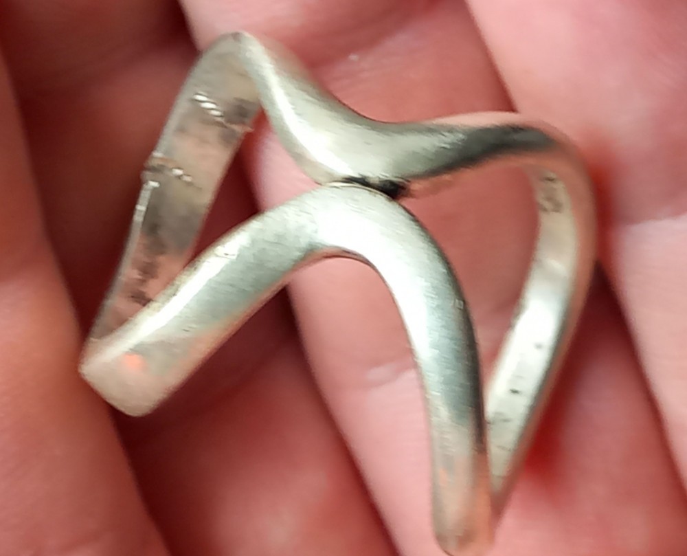(104) INEL DUBLU DIN ARGINT, UNISEX, VINTAGE, MODEL FRUMOS, MARCAJ ARGINT 925