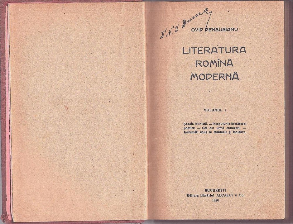 1138SPN Literatura romînă modernă, volumul I, de Ovid Densusianu, ediția I, 1920