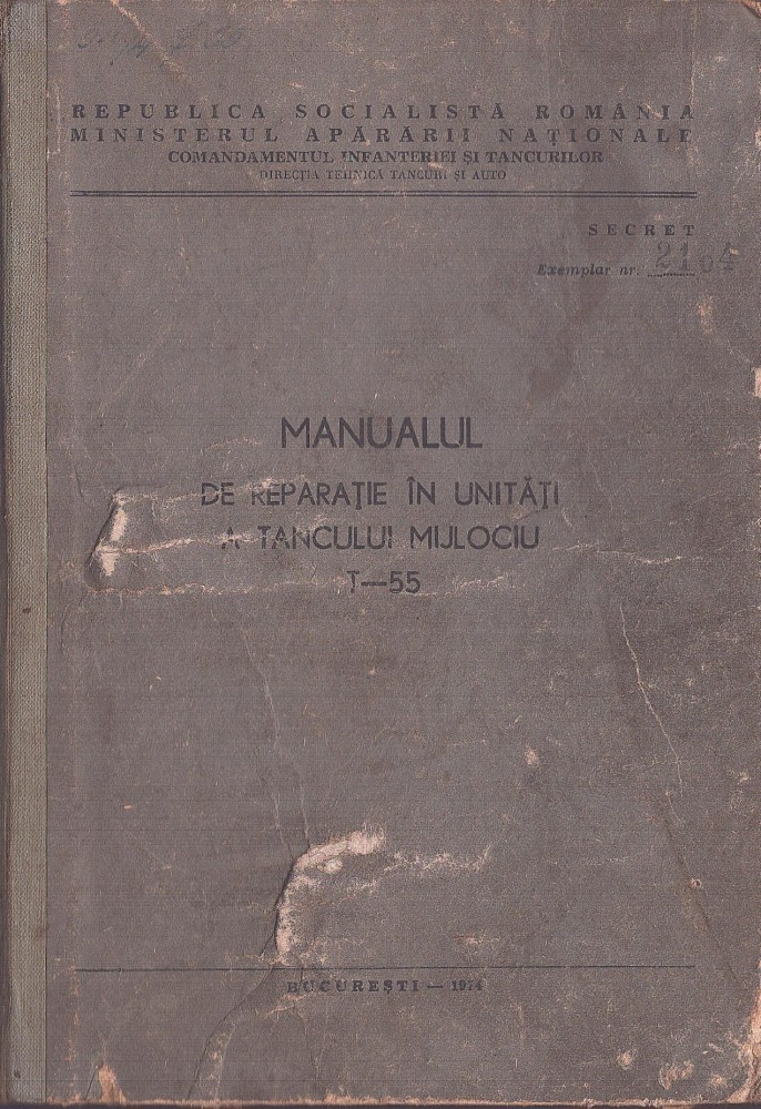 Manualul de reparație în unități a tancului mijlociu T-55, 1974.