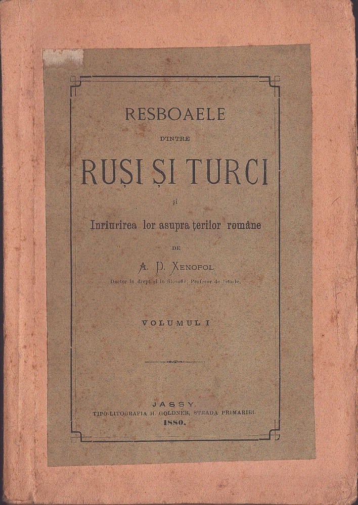 Resboaiele d’intre ruși și turci și Inriurirea lor asupra țerilor române de A D Xenopol, volumul I, 1880, Jassy.