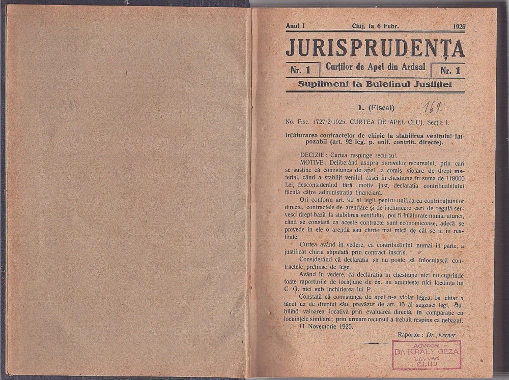 1205SPN Jurisprudența Curților de Apel din Ardeal, 1926, Cluj, colegat de 42 numere