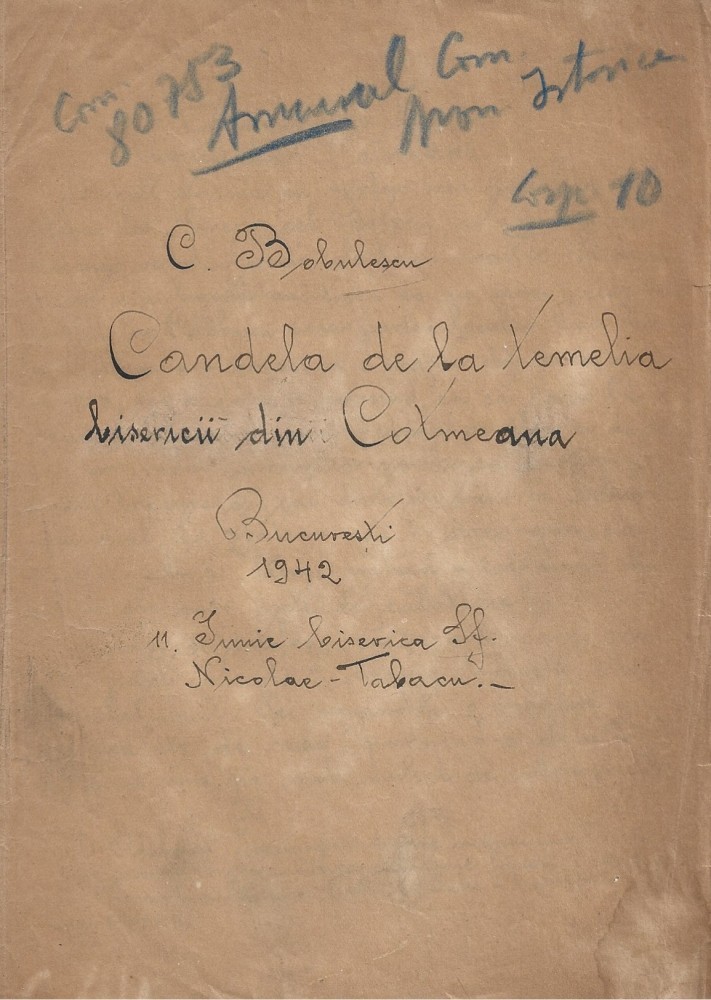 1526SPN Manuscrisul lucrării Candela de la temelia bisericii din Cotmeana de Constantin Bobulescu, 1942