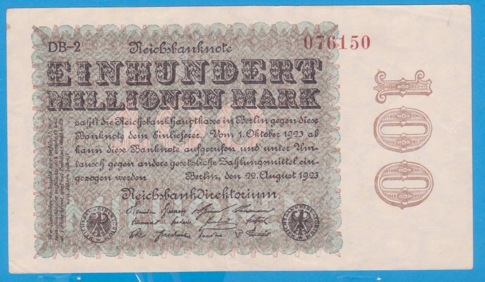 (17) BANCNOTA GERMANIA - 100 MILLIONEN MARK 22.08.1923 - FILIGRAN SMALL CIRCLE