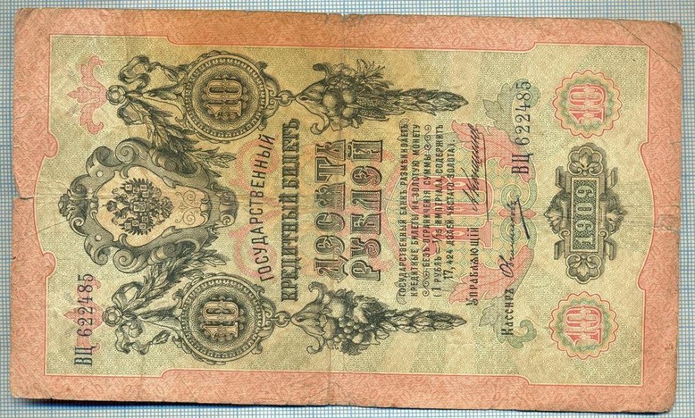 1713 BANCNOTA - RUSIA - 10 RUBLES - anul 1909 -SERIA 622485 -starea care se vede
