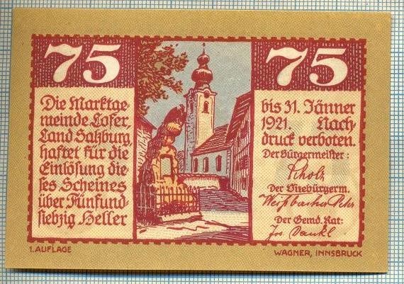 1838 BANCNOTA NOTGELD - AUSTRIA - 75 HELLER - anul 1921 -SERIA FARA -starea care se vede