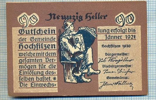 1854 BANCNOTA NOTGELD - AUSTRIA - 90 HELLER - anul 1921 -SERIA FARA -starea care se vede