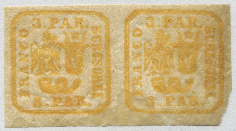 1864 , Lp 11 , Principatele Unite 3 Parale , pereche orizontala - MNH
