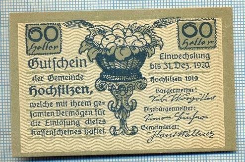1942 BANCNOTA NOTGELD - AUSTRIA - 60 HELLER - anul 1920 -SERIA FARA -starea care se vede