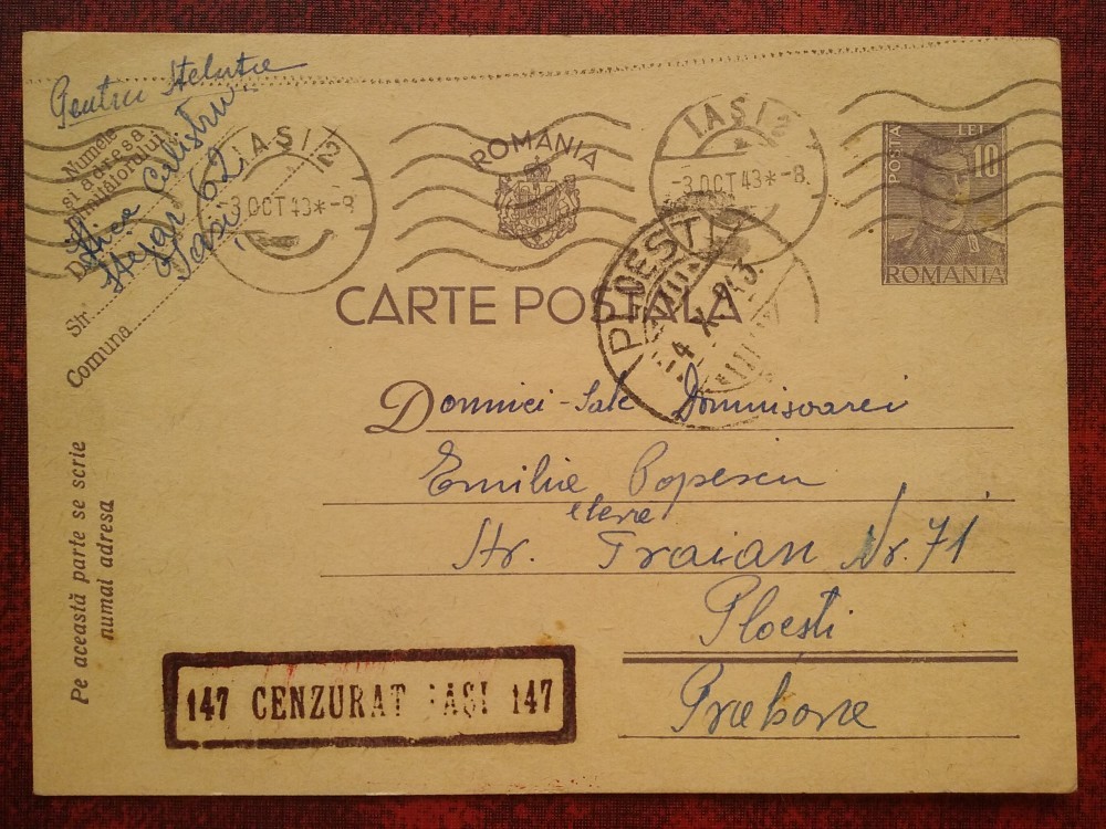 1943-C.P. circ. -CENZURAT IASI 147