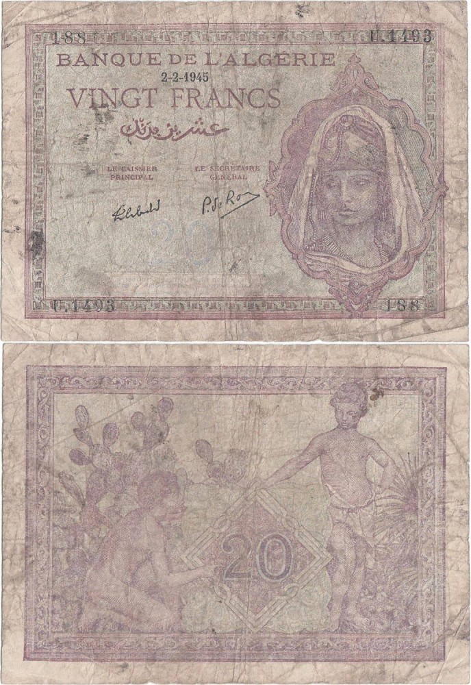 1945 ( 2 II ) , 20 francs ( P-92b.1 ) - Algeria