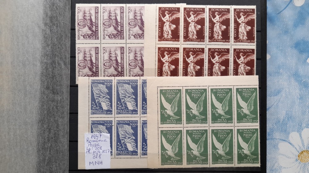 1947-Romania-Pacea-Bl8-4 buc.-compl.set-guma orig.-MNH