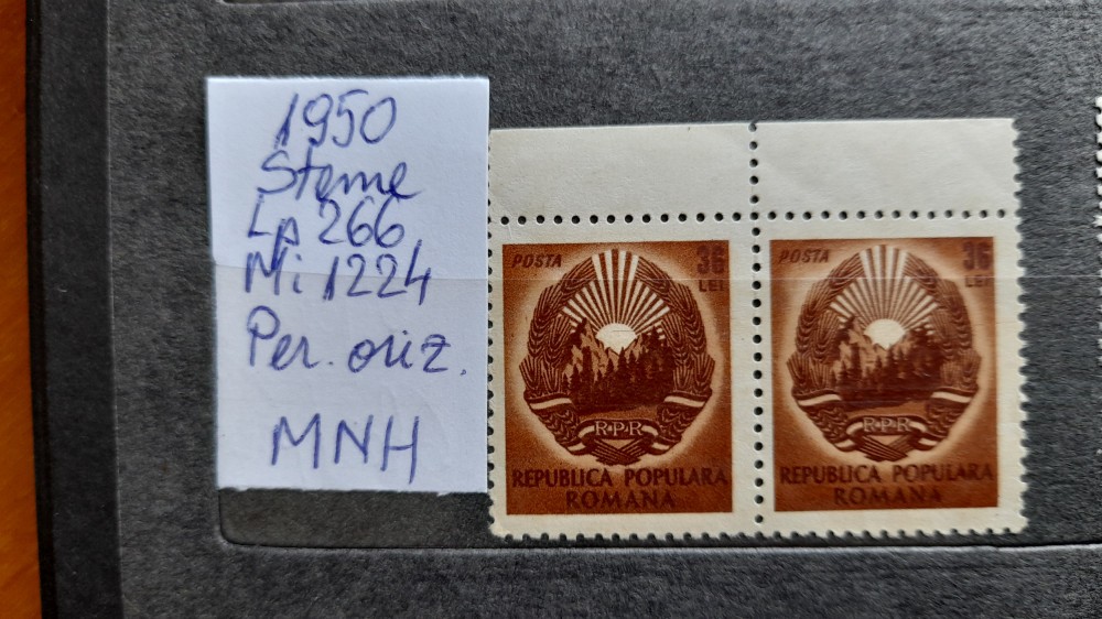 1950-Romania-Steme-Lp266-Mi1224-per.oriz.-guma orig.-MNH