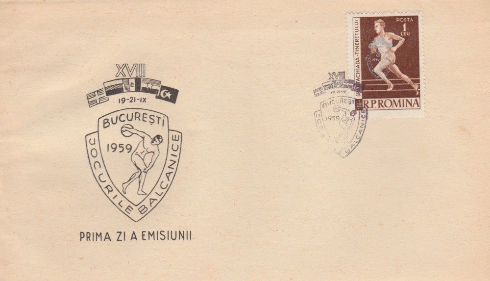 1959 Romania - FDC A VIII-a editie a Jocurilor Balcanice (supratipar), LP 479