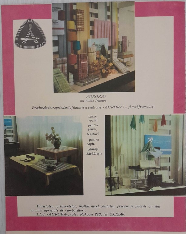 1970 Reclama Intrepr Filatura Tesatura AURORA comunism Bucuresti Rahovei 26 x 20