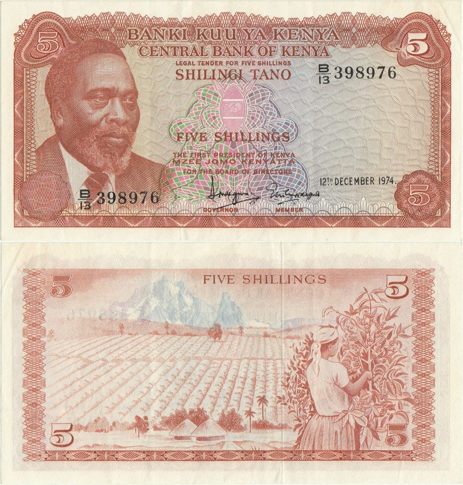 1974 (12 XII), 5 shillings (P-11a) - Kenya - stare XF+++/aUNC!