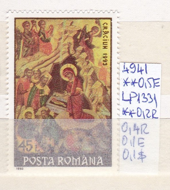 1993 Crăciun LP1331 MNH. Poate fi comandat la prețul de 0,5 Lei/buc.. Încerc să păstrez prețurile emisiunilor listate de mine la cota cea mai minimă din Okazii, însă din cauza politicii de comisionare de min.1Ron/emisiune, nu le pot lista la aceste prețuri minimale, pierderea ar fi enormă. Astfel Prețul emisiunii listat se compune din valoarea emisiunii + taxele obligatorii. Livrare personal în Miercurea Ciuc, prin poștă cu ramburs (aprox. 17 Ron) sau prin poștă în scrisoare recomandată cu plată anterioară în cont bancar (aprox. 6Ron), iar costurile poștale vor fi suportate de către cumpărător.