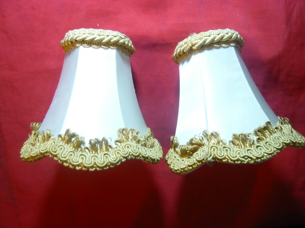 2 Abajururi vechi matase culoare alb- crem cu garnitura aurie ,h=11,5cm ,Dbaza=13cm