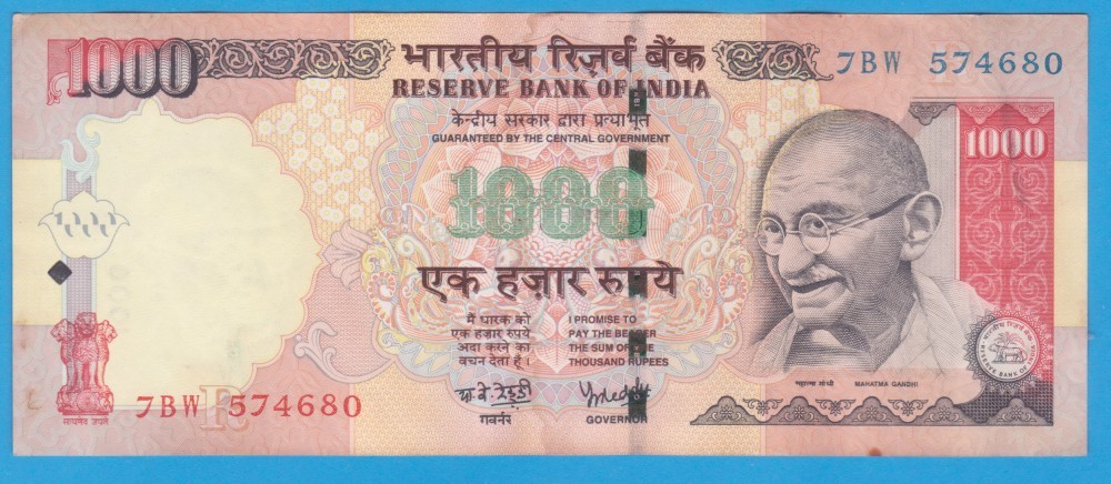 BANCNOTA INDIA - 1000 RUPEES 2007, VALOARE NOMINALA MARE