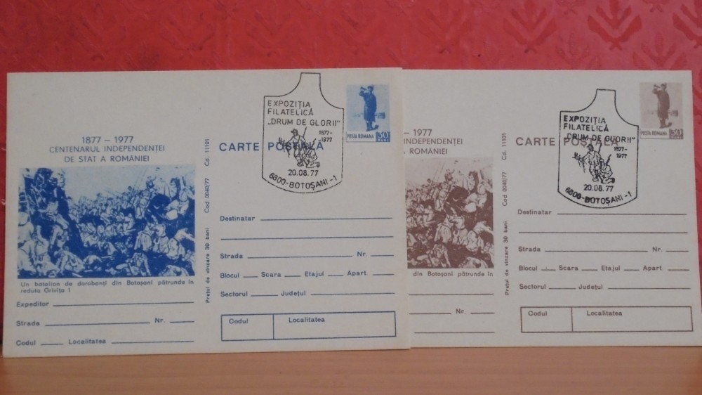 2 BUC. CULORI DIFERITE- CENTENARUL INDEPENDENTEI ROMANIEI 1977- NECIRCULATE,