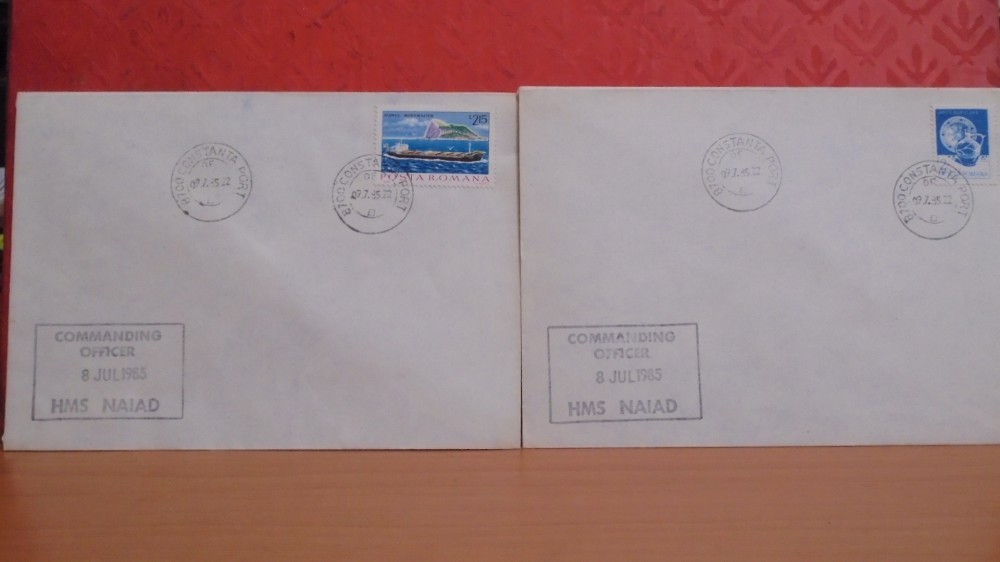 2 BUC. PLICURI CORESPONDENTA CU STAMPILA NAVEI HMS NAIAD SI STAMPILA PORT CTA. ( CONSTANTA ) TRANZIT - 1985 - CIRCULATE.