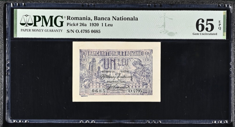 2 lei 1920 PMG65 UNC bancnota gradata