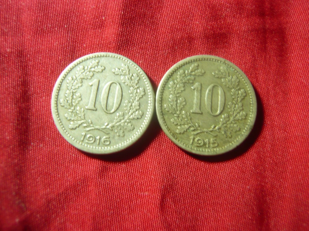 2 Monede 10 halleri 1915 si 1916 , Cu-Ni-Zn , cal. F.Buna