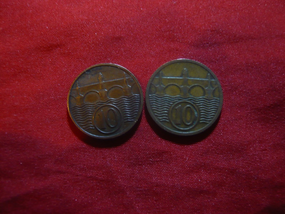 2 Monede 10 halleri 1925 si 1937 Cehoslovacia ,bronz , cal.F.Buna