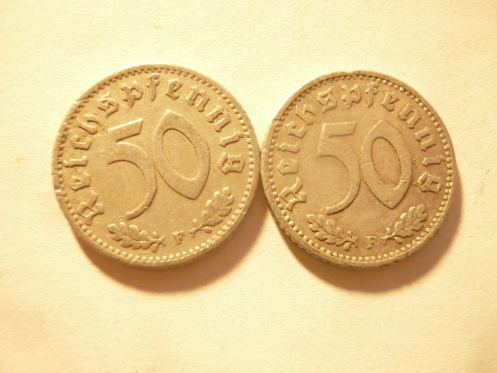 *2 Monede Germania nazista 50 pfennig 1939 si 1940 litera F ,aluminiu , cal. Buna