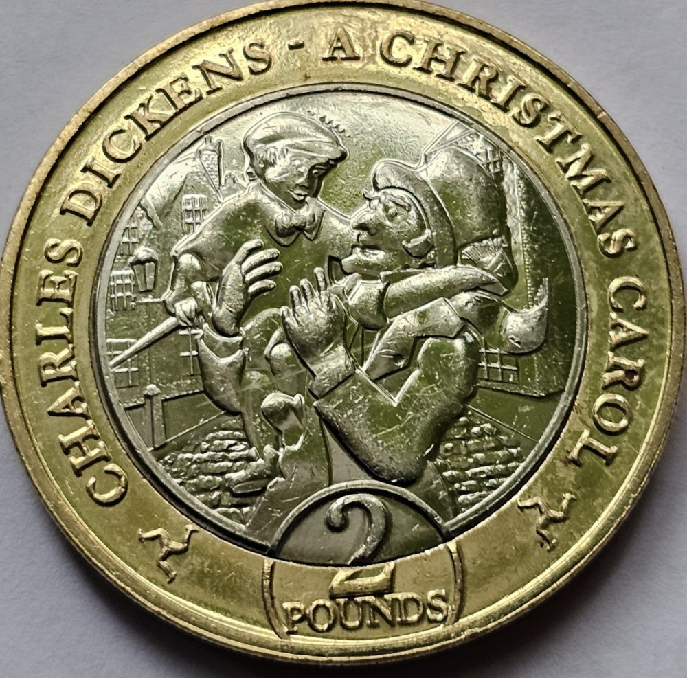 2 pounds 2020 Isle of Man, Christmas Carol - Scrooge with Tiny Tim, km#1688