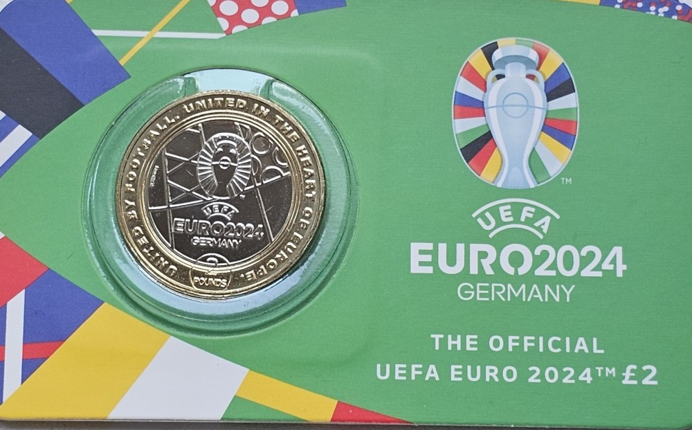 2 pounds 2024 Pitcairn Island, UEFA, EURO 2024, Germany, Brilliant unc, Coincard