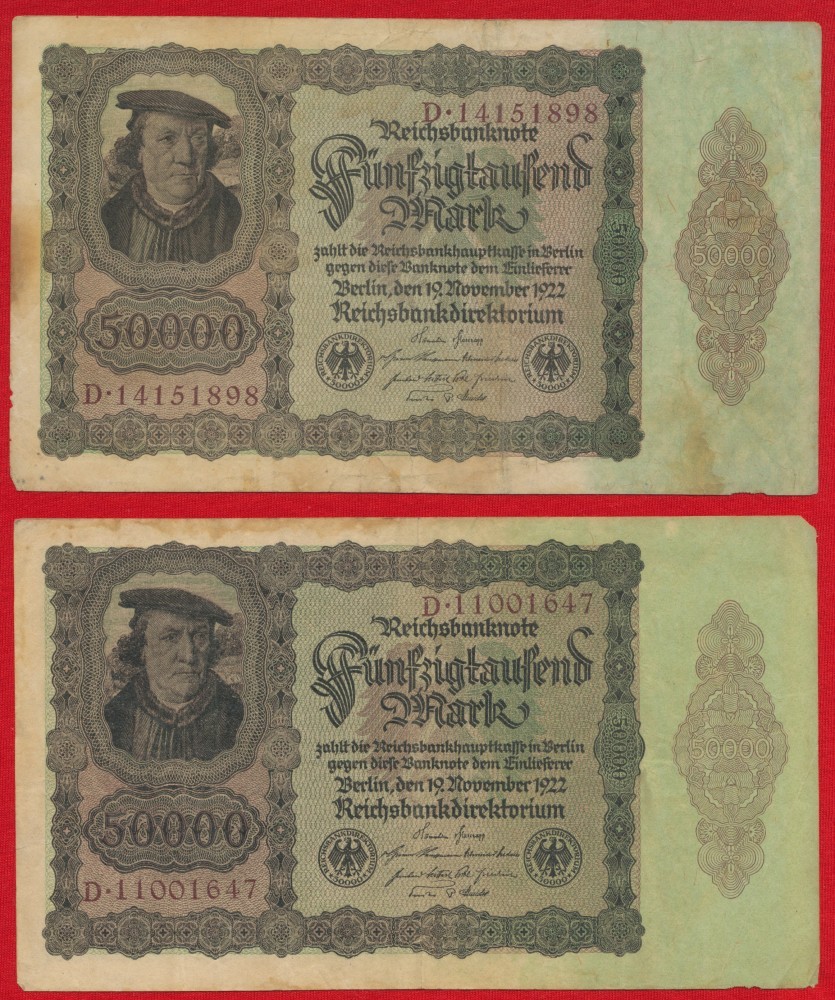 2 Reichsbanknote 50 000 Mark din 19 noiembrie 1922