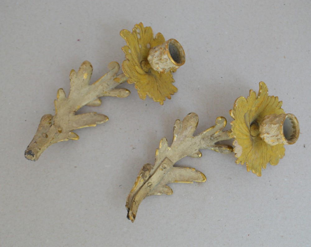 2 sfesnice de perete bronz aurit, vopsite, li s-a atasat la un moment dat cate o tija de metal.