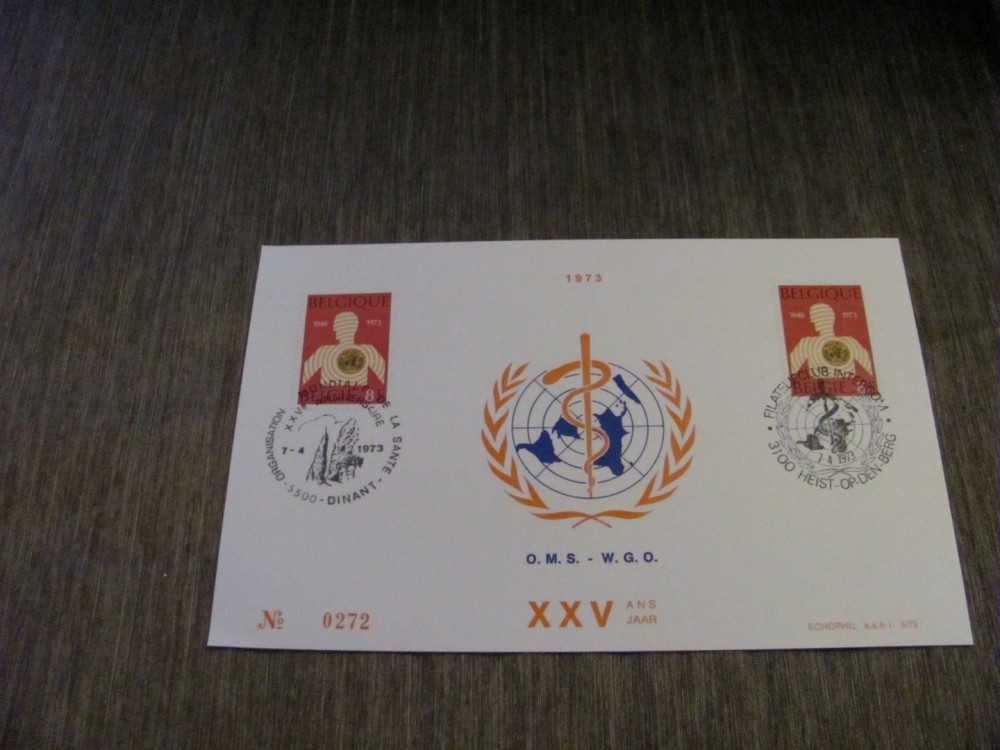 2 Timbre Obliterate 8Fr, Ștampile Speciale Dinant & Heist, Ediție Limitată Colecție Medicală Belgia 1973