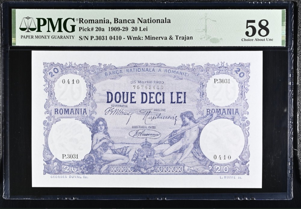 20 lei 1920 PMG58 aUNC bancnota gradata