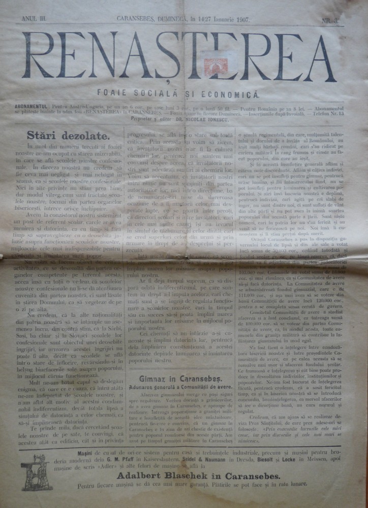 20 numere diferite din ziarul Renasterea din 1906 , publicat la Caransebes