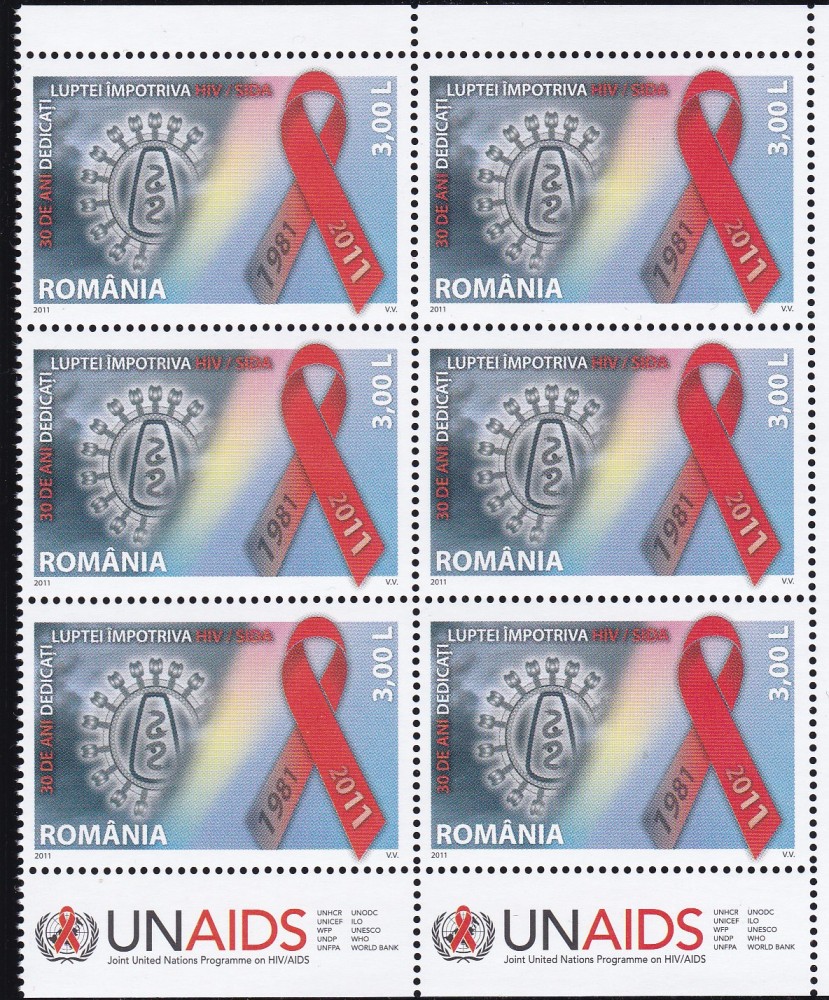 2011 LP 1904 LP 1904 c 30 ANI DEDICATI LUPTEI HIV/SIDA BLOC 6 SERII+2 TABS MNH