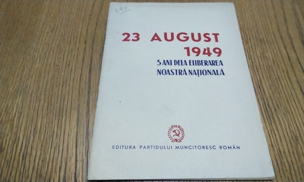 23 AUGUST 1949 5 ANI DELA ELIBERAREA NOASTRA NATIONALA Editura Partidului Muncitoresc Roman, 1949, 31 p.; coperta originala