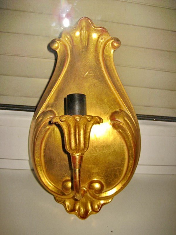 2859-Aplica electrica in stil baroc din calamina sintetica plastefiata, in stare buna, inaltime 27cm, latime 15cm.