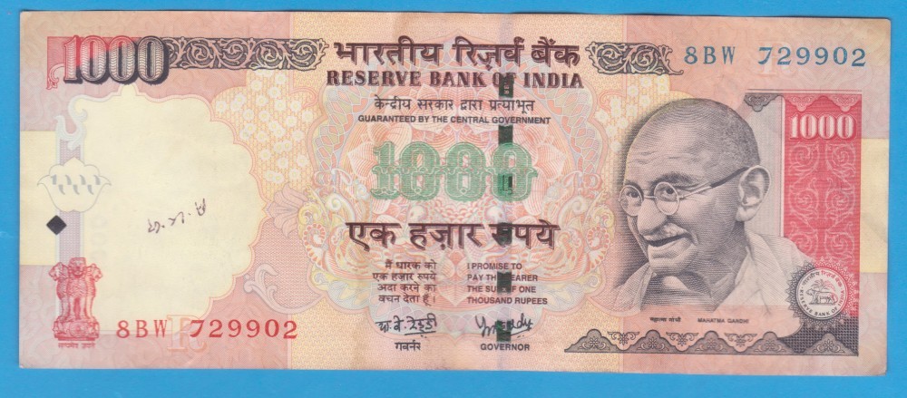 (3) BANCNOTA INDIA - 1000 RUPEES 2007, VALOARE NOMINALA MARE