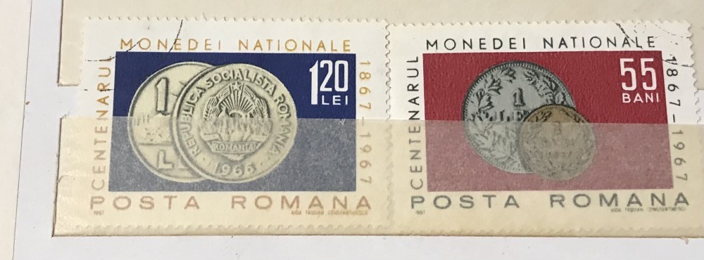 (3) Timbre Serii Romania Centenarul Monedelor Nationale 1867 1967