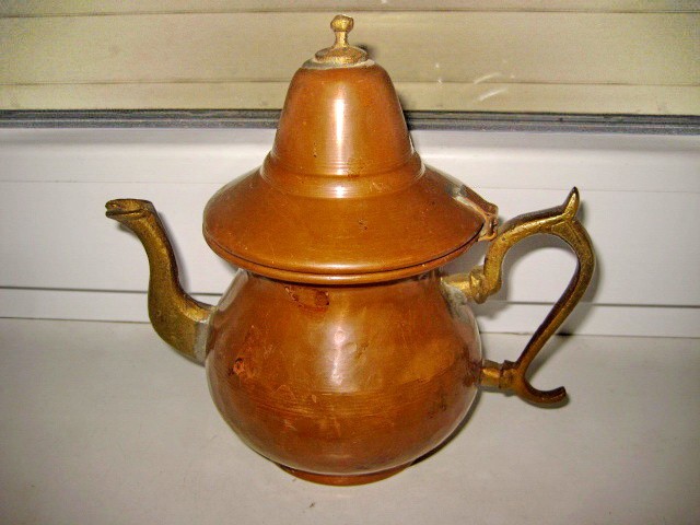 3167-Ceainic vechi decorativ manual executat din cupru.
