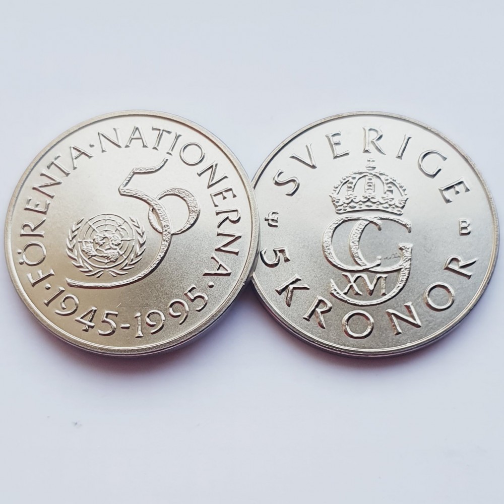 3274 Suedia 5 kronor 1995 Carl XVI Gustaf (United Nations) km 885 aunc-UNC